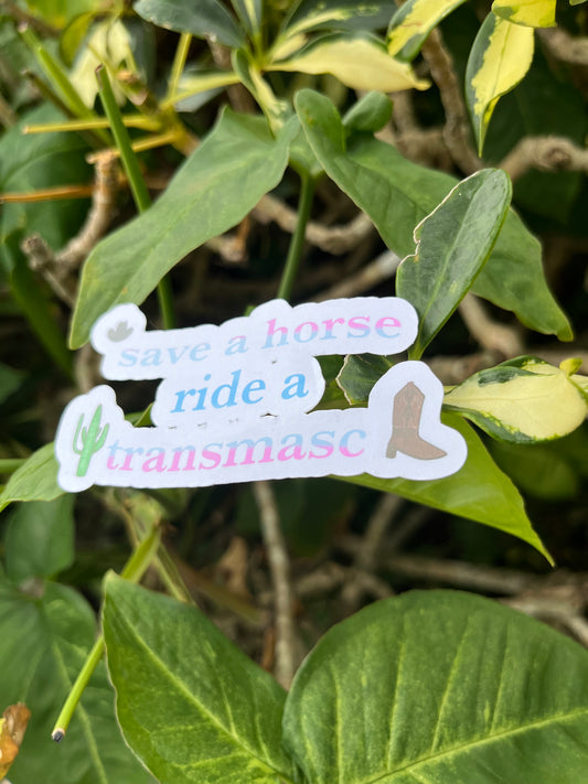 Save a Horse, Ride a Transmasc Sticker | Transmasculine Country Meme | Save a Horse, Ride a Cowboy